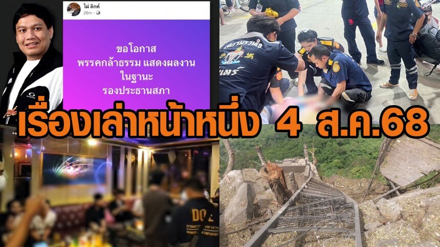เรื่องเล่าหน้าหนึ่ง 4 ส.ค.68 กล้าธรรมขอโอกาสนั่งรอง ปธ.สภา-เป๊ก ผลิตโชค ถูกมีดฟันคาง-ชายแดนยังไร้เหตุปะทะ