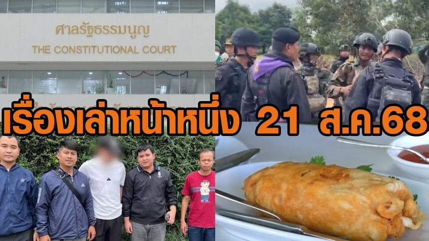 เรื่องเล่าหน้าหนึ่ง 21 ส.ค.68 ศาลนัดไต่สวนนายกฯอิ๊งค์-ปรับเจ๊ไฝ2พัน-เขมรอ้างทหารเมาป่วน
