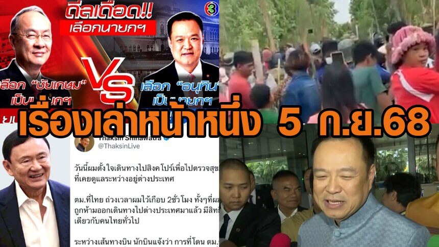 เรื่องเล่าหน้าหนึ่ง 5 ก.ย.68 โหวตนายกฯคนใหม่-ทักษิณลงจอดดูไบ-เขมรยั่วยุไทยบ้านหนองจาน