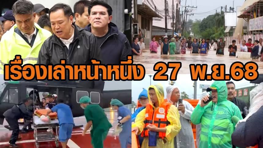 เรื่องเล่าหน้าหนึ่ง 27 พ.ย.68 นายกฯ ลงพื้นที่หาดใหญ่-สงขลาน้ำเริ่มลด-ผู้อพยพ มอ.หาดใหญ่ทะลุหมื่น