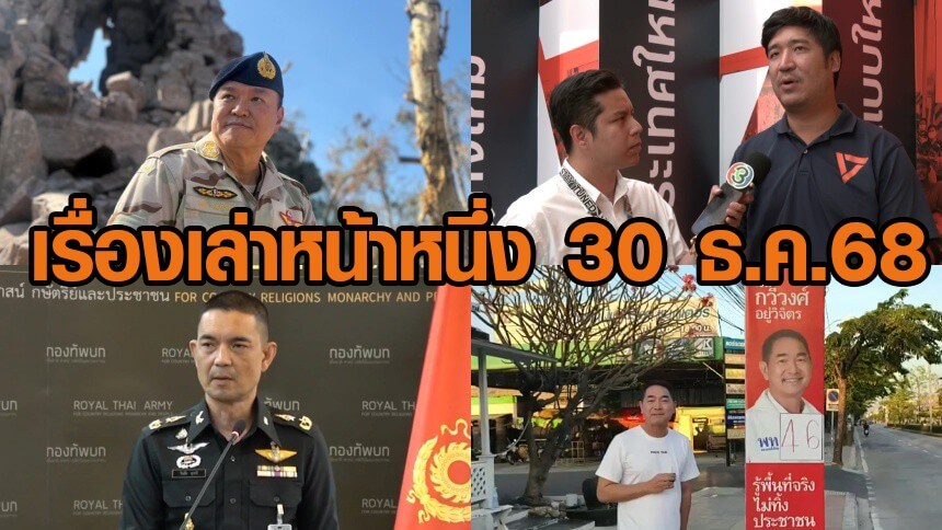 เรื่องเล่าหน้าหนึ่ง 30 ธ.ค.68 อนุทินขึ้นปราสาทตาควาย-จับผู้สมัคร ปชน.ฟอกเงิน-ทหารไทยเสียขารายที่ 11