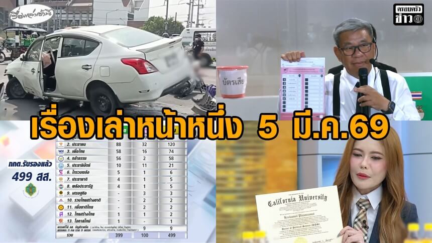 เรื่องเล่าหน้าหนึ่ง 5 มี.ค.69 นายกฯ ตรึงดีเซล 15 วัน-กกต.รับรองแล้ว 499 สส.-ตัดสิทธิหมอเกศ 10 ปี