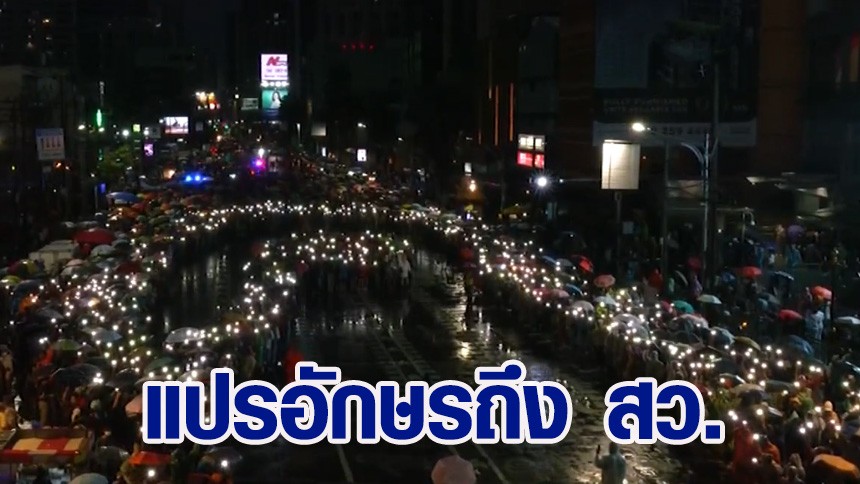 แท็กที่เกี่ยวข้อง บก.ลายจุด ,ม็อบพร้อม ,แปรอักษร ,ส่งข้อความถึง สว.