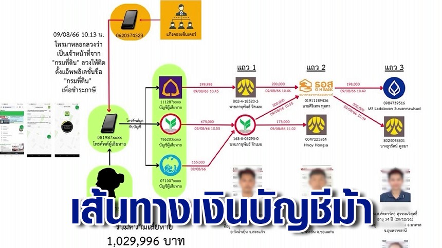 แท็กที่เกี่ยวข้อง บัญชีม้า ,แก๊งคอลเซนเตอร์ ,กรมที่ดิน ,แกะรอยเจ้าของบัญชีม้า ,แก๊งคอล