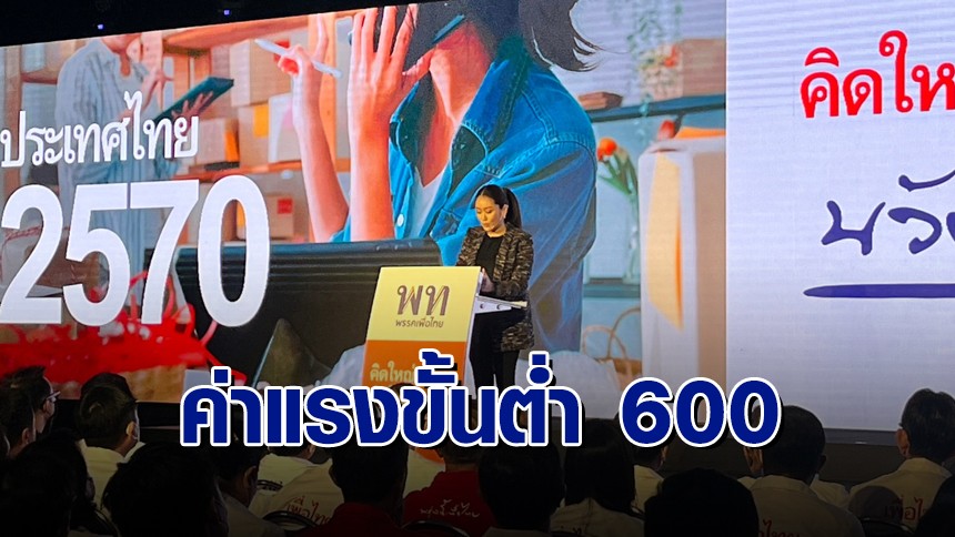 ‘อุ๊งอิ๊ง’ เปิดแคมเปญเลือกตั้ง “คิดใหญ่ ทำเป็น เพื่อไทยทุกคน” เปิด 10 นโยบายพลิกฟื้นประเทศ ปี 2570 ค่าแรงขั้นต่ำ 600 บาท ต่อวัน ปริญญาตรี 25,000 บาทต่อเดือน บัตรประชาชนใบเดียวรักษาทุกโรคทั่วประเทศฟรี บอกเพื่อไทยเป็นรัฐบาลไม่ต้องย้ายประเทศแค่เปลี่ยนนายกฯ