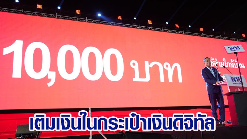 ‘เพื่อไทย’ ประกาศ เติม 10,000 บาท ในกระเป๋าเงินดิจิทัล ให้คนไทยอายุ 16 ขึ้นไป