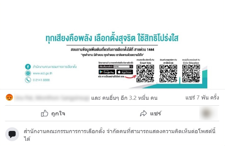 โดยมีการแสดงความเห็นวิจารณ์การทำงานของ กกต. อย่างร้อนแรง ภายหลังจากที่มีการเผยแพร่ประกาศมติของ กกต.ในเรื่องของพิธา ล่าสุด กกต.ได้มีการปิดคอมเมนต์ในแฟลตฟอร์มเฟซบุ๊ก หรือจำกัดคนที่สามารถแสดงความคิดเห็นต่อโพสต์