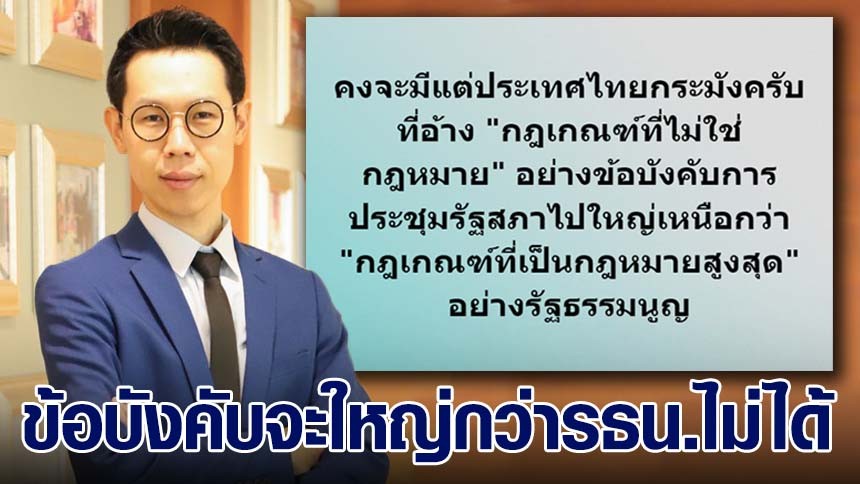 นั่นหมายความว่า ญัตติหรือข้อบังคับต่าง ๆ จะใหญ่กว่ารัฐธรรมนูญไม่ได้ ซึ่งในวันต่อมา (19 ก.ค. 66) ได้อธิบายผ่านเฟซบุ๊กส่วนตัวว่า “คงจะมีแต่ประเทศไทยกระมังครับที่อ้าง "กฎเกณฑ์ที่ไม่ใช่กฎหมาย" อย่างข้อบังคับการประชุมรัฐสภาไปใหญ่เหนือกว่า "กฎเกณฑ์ที่เป็นกฎหมายสูงสุด" อย่างรัฐธรรมนูญ”