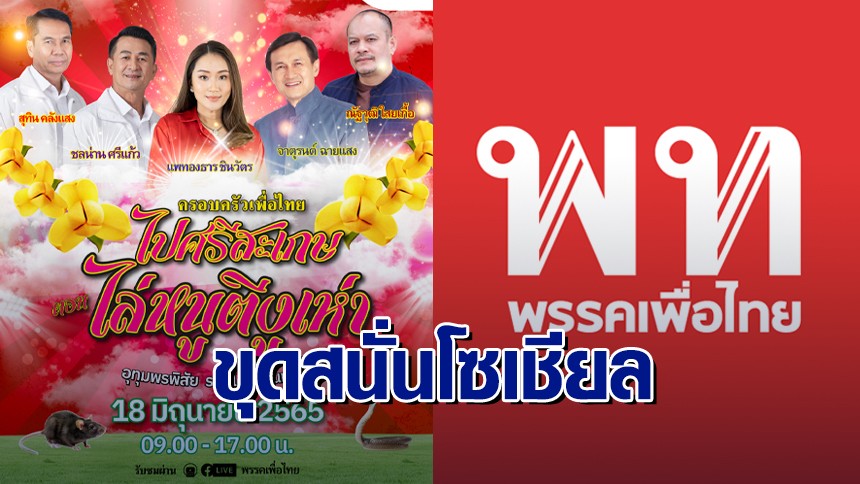 ล่าสุด ชาวโซเชียลแห่ขุดโพสต์ของ ครอบครัวเพื่อไทย ที่จัดกิจกรรมลงพื้นที่ จ.ศรีสะเกษ ภายใต้ยุทธการ “ไล่หนู ตีงูเห่า” ใน 3 พื้นที่ คือ อ.อุทุมพรพิสัย อ.ราษีไศล และ อ.ขุนหาญ นำทีมโดย ชลน่าน ศรีแก้ว, แพทองธาร ชินวัตร, สุทิน คลังแสง, จาตุรนต์ ฉายแสง และ ณัฐวุฒิ ใสยเกื้อ เมื่อวันที่ 18 มิถุนายน 2565 โดยประกาศว่า