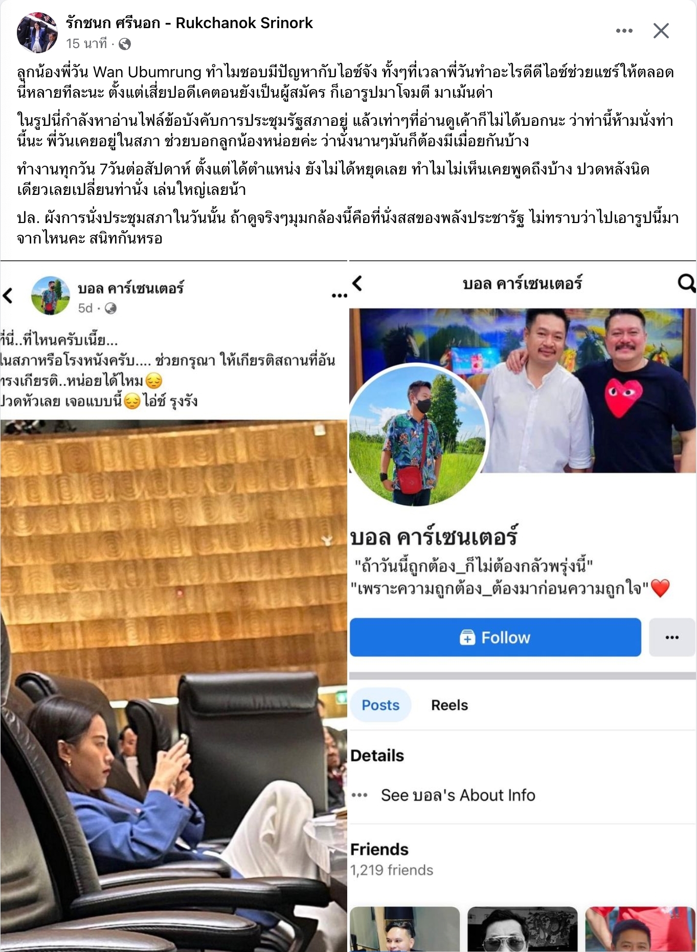 ปล.ผังการนั่งประชุมสภาในวันนั้น ถ้าดูจริงๆ มุมกล้องนี้คือที่นั่ง สส.ของพลังประชารัฐ ไม่ทราบว่าไปเอารูปนี้มาจากไหนคะ สนิทกันหรอ”