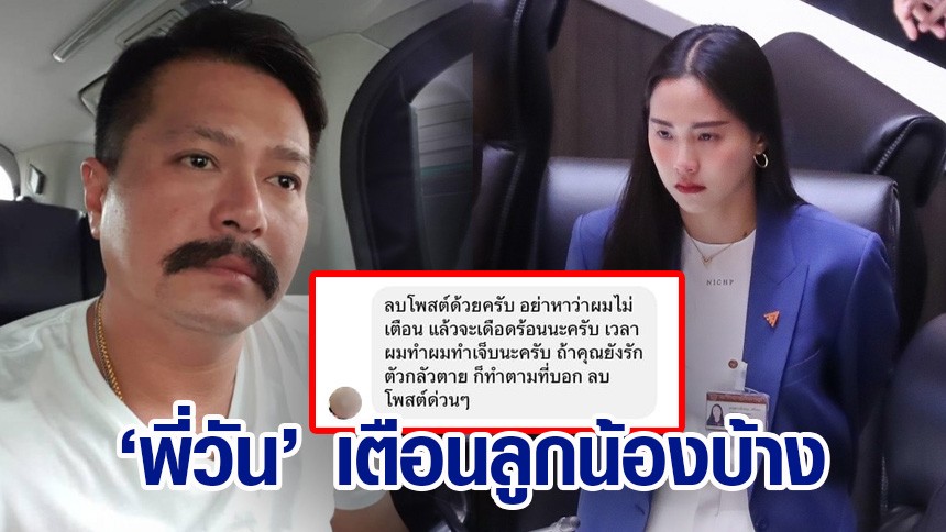 พร้อมแนบรูปแชตที่ลูกน้อง นายวัน ส่งข้อความมาข่มขู่ขอให้ลบ ปรากฏข้อความว่า "ลบโพสต์ด้วยครับ อย่าหาว่าผมไม่เตือน แล้วจะเดือดร้อนนะครับ เวลาผมทำผมทำเจ็บนะครับ ถ้าคุณยังรักตัวกลัวตาย ก็ทำตามที่บอก ลบโพสต์ด่วนๆ"