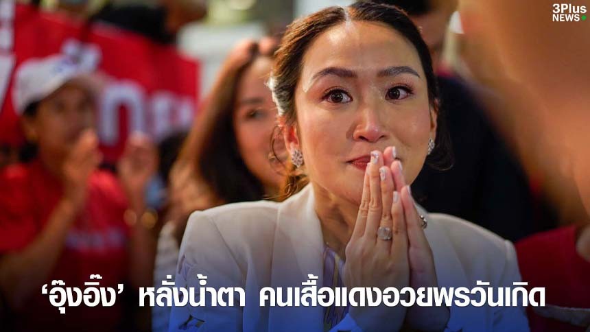 ปลื้มใจ 'อุ๊งอิ๊ง' หลั่งน้ำตา คนเสื้อแดงอวยพรวันเกิด 37 ปี ส่งเสียง ‘รักทักษิณ-รักเพื่อไทย-รักอุ๊งอิ๊ง’