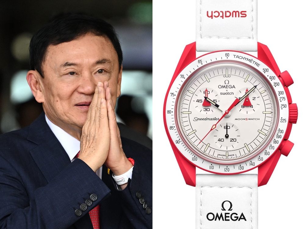 อย่างไรก็ตาม ทันทีที่ นายทักษิณ ได้เดินออกมาก้มกราบพระบรมฉายาลักษณ์ ปรากฏว่าทักษิณได้สลับเปลี่ยนไปใส่นาฬิกา OMEGA X SWATCH Mission to Mars สีแดง-ขาว ที่เป็นนาฬิกาเพื่อเป็นการรำลึกถึงดาวอังคาร โดยมีมูลค่าเรือนละ 9,300 บาท