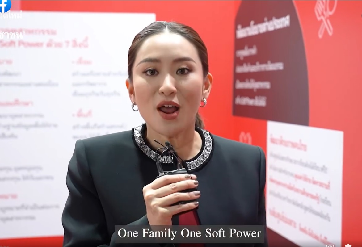 ล่าสุด “อุ๊งอิ๊ง แพทองธาร” ในฐานะรองประธานคณะกรรมการยุทธศาสตร์ซอฟต์เพาเวอร์แห่งชาติ ได้โพสต์คลิปแนวทางการผลักดันซอฟต์เพาเวอร์ของไทย พร้อมระบุข้อความว่า “ขอร่วมเป็นหนึ่งในทีม ที่จะปลดล็อกศักยภาพคนไทย ใช้ซอฟต์เพาเวอร์ ความคิดสร้างสรรค์ และนโยบายจากรัฐร่วมกับภาคเอกชนเข้าไปช่วยกันผลักดันไปสู่เวทีโลก พาประเทศพ้นจากประเทศรายได้ปานกลาง สู่ประเทศรายได้สูงค่ะ ส่วนคลิปนี้ เป็นคลิปเก่าจากงานหนังสือครั้งที่แล้ว นิทรรศการ ฝัน ปัง ดัง รวย วันที่เราปักหมุดนโยบาย OFOS / THACCA ครั้งแรกค่ะ”