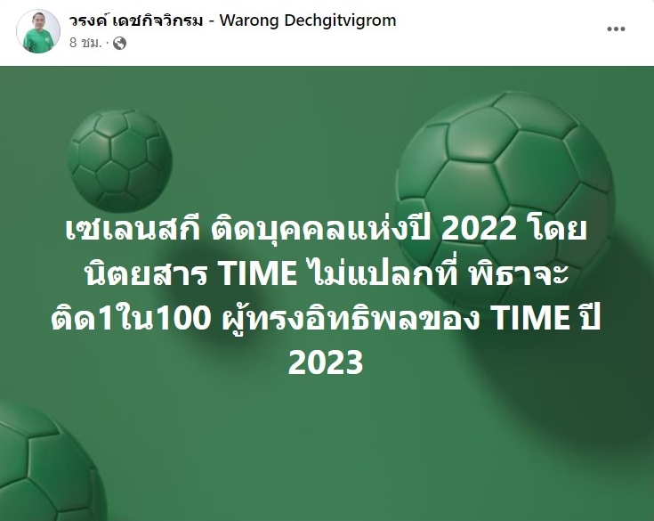 “เซเลนสกี ติดบุคคลแห่งปี 2022 โดยนิตยสาร TIME ไม่แปลกที่ พิธาจะติด 1 ใน100 ผู้ทรงอิทธิพลของ TIME ปี 2023