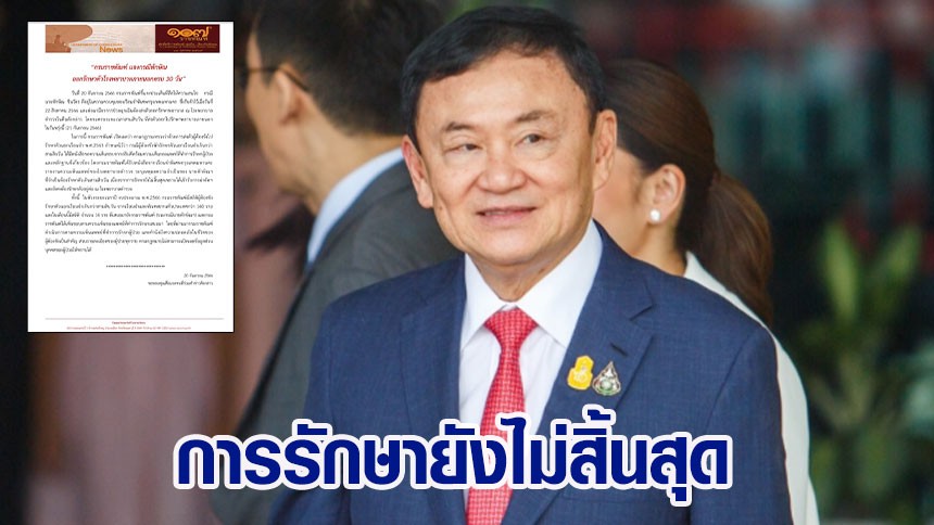 ‘กรมราชทัณฑ์’ แจง ‘ทักษิณ’ รักษายังไม่สิ้นสุด หลังรักษาตัวรพ.ภายนอกครบ 30 วัน