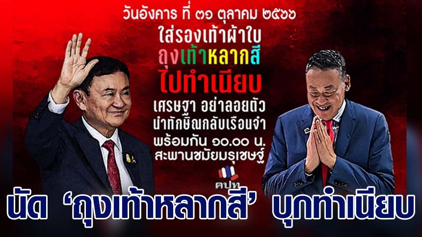 'คปท.' นัด 'สวมถุงเท้าหลากสี' บุกทำเนียบ จี้ นายกฯ อย่าลอยตัว นำทักษิณกลับเรือนจำ