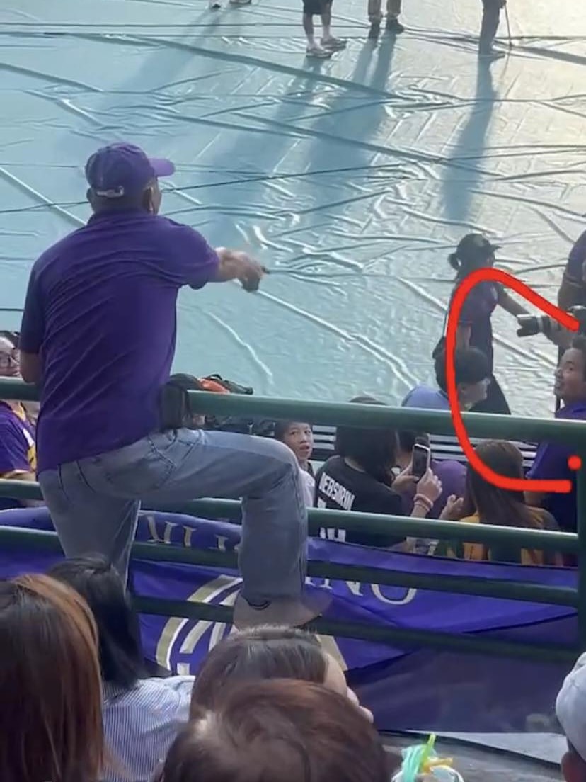 พร้อมระบุข้อความว่า ทุกคนคะ พิธาถูกโห่ไล่ค่ะ เหตุการณ์เกิดช่วงพักครึ่งแรก ลุงที่เป็นศิษย์เก่าโรงเรียนกรุงเทพคริสเตียน ลุกขึ้นมาชี้ที่พิธาและโห่ไล่ กองเชียร์ที่นั่งอยู่ก็ร่วมกันโห่ค่ะ สักพักพี่อีกคนเดินมาจากฝั่งเทพศิรินทร์ชูเสื้อที่เขียนว่า “อย่าเสือ...!! เรื่องแปรอักษรของพวกกู” มาชูต่อหน้าพิธา ได้รับเสียงเชียร์เป็นอย่างมาก ส่วนพิธาหน้าเสีย และบอกว่า ผมไม่เกี่ยว!!