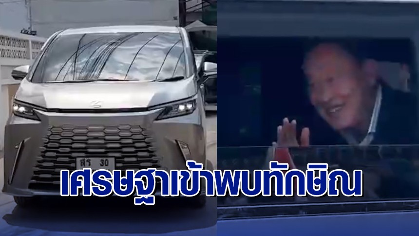 ‘เศรษฐา’ นั่งรถประจำตำแหน่งคันใหม่ พบ ‘ทักษิณ’ บ้านจันทร์ส่องหล้า
