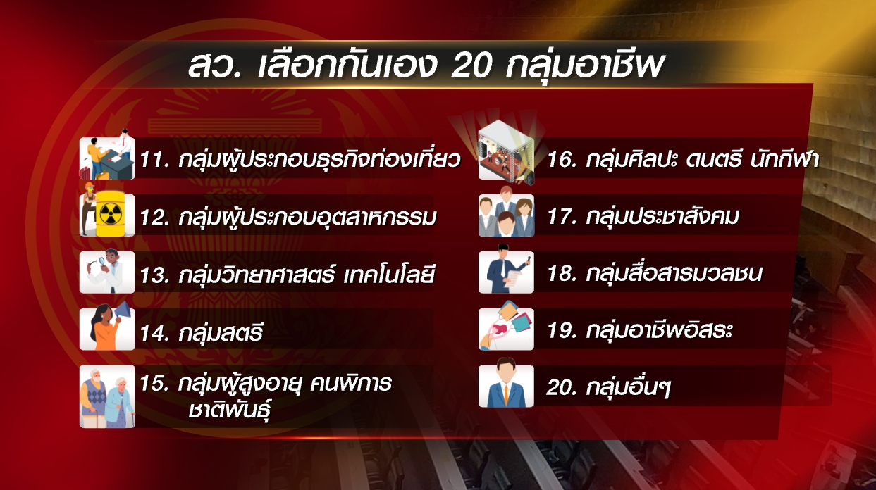 สำหรับ สว. 20 กลุ่มประกอบด้วย