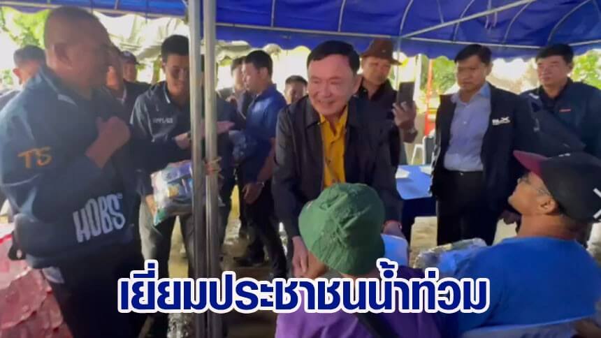 ‘ทักษิณ’ ลุยเชียงราย เยี่ยมประชาชนน้ำท่วม บอกมาตอบแทบบุญคุณพี่น้อง