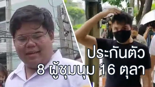 ศาลแขวงปทุมวันยกคำร้องขอฝากขัง 8 ผู้ถูกจับกุมจากการสลายการชุมนุมที่แยกปทุมวัน หรือ ม็อบ16ตุลา จำนวน 8 คน และอนุญาตประกันตัวในวงเงิน 20,000 บาท