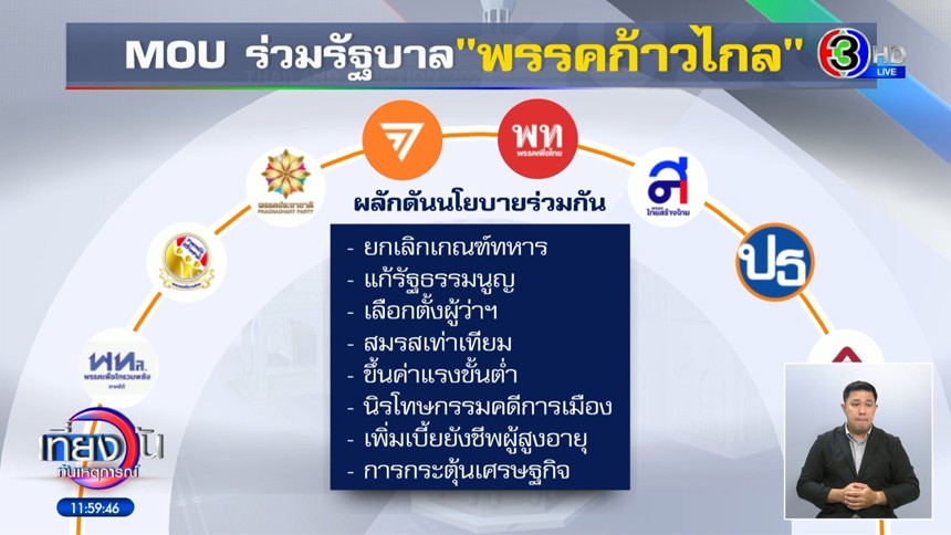 แท็กที่เกี่ยวข้อง MOU ,พรรคก้าวไกล ,พรรคร่วมรัฐบาล ,บันทึกข้อตกลง