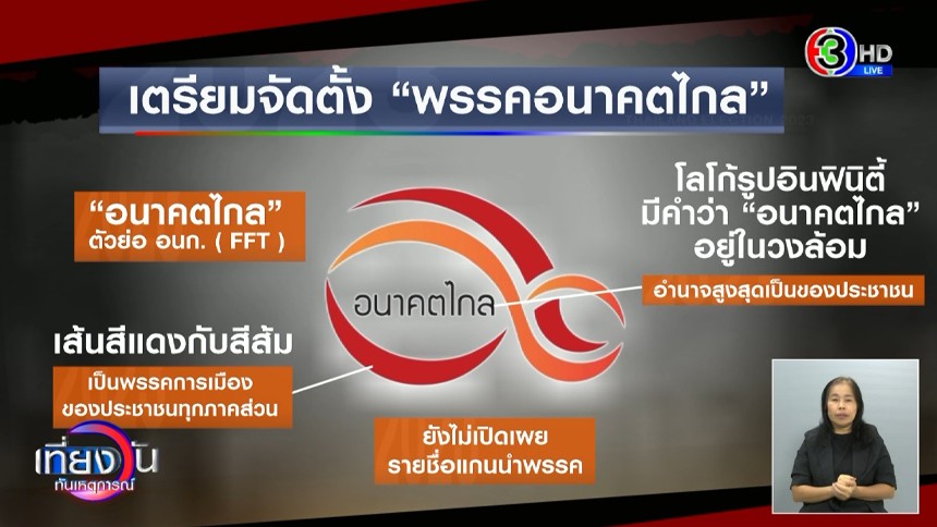 'อนาคตไกล' แจ้ง กกต. เตรียมจัดตั้งพรรคการเมือง ยังไม่เผยรายชื่อแกนนำพรรค โลโก้แดง-ส้ม สื่อถึงอำนาจสูงสุดเป็นของประชาชน