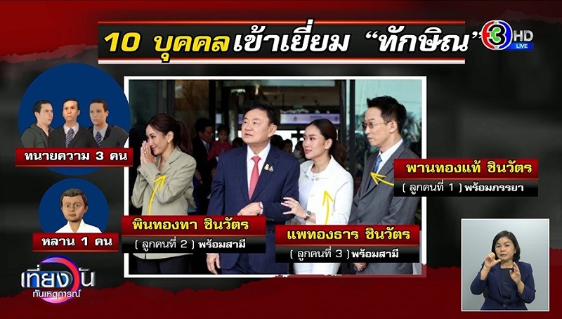 เปิด 10 รายชื่อ เข้าเยี่ยม 'ทักษิณ' วันแรก ลูก-หลาน พร้อมทนาย 3 คน เตรียมเข้าพบ