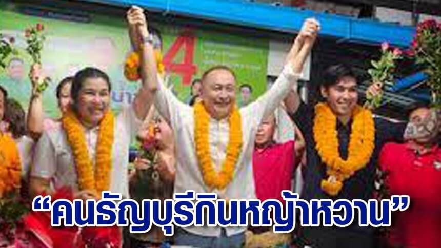 พร้อมทิ้งท้ายว่า ชาวธัญบุรีเนี่ยกินหญ้าหวานครับ ถ้ากินหญ้าขม ผมก็คงไม่ได้รับชัยชนะ พ่อแม่พี่น้องชาวธัญบุรีทานหญ้าหวาน และจะทานตลอดไป
