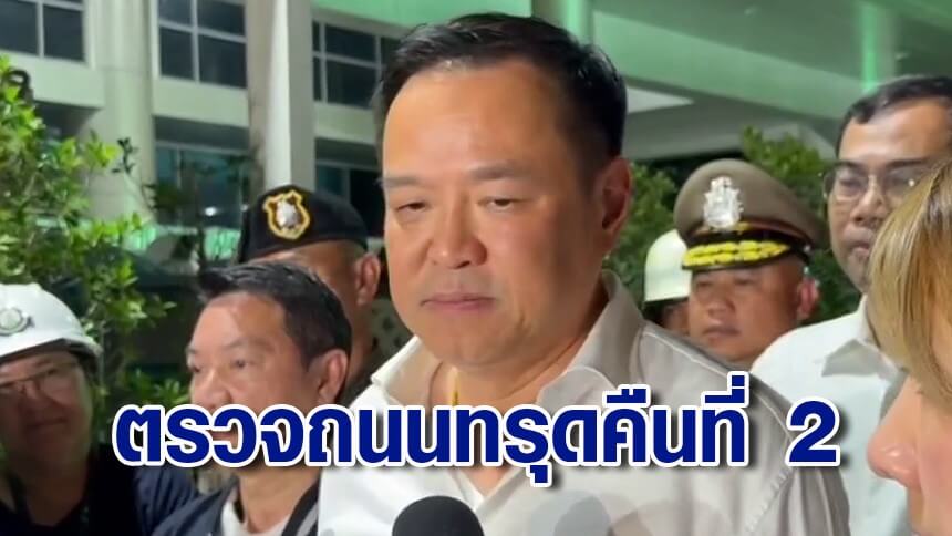 "นายกฯ อนุทิน" ลุยตรวจถนนทรุดคืนที่ 2 คาดคืนพื้นผิวจราจรใน 2 สัปดาห์ ย้ำความปลอดภัยของ ปชช.สำคัญสุด