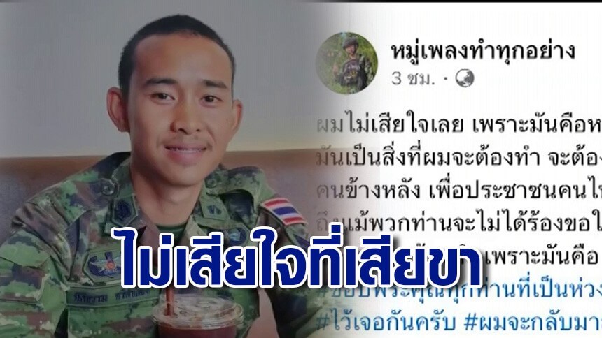 'หมู่เพลง' โพสต์ไม่เสียใจที่เสียขา ทบ.ลุยฟ้องโลก เขมรซุก PMN-2 ทำทหารไทยเสียขาที่ 9