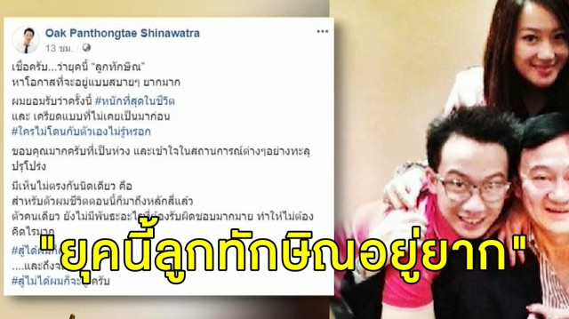 ล่าสุด โอ๊ค พานทองแท้ ชินวัตร โพสต์ข้อความผ่านเฟซบุ๊คระบุว่า