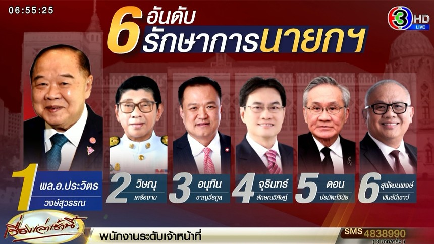 ขณะที่คำสั่งสำนักนายกรัฐมนตรี ระบุว่า ในกรณีที่นายกรัฐมนตรีไม่อาจปฏิบัติราชการได้ คณะรัฐมนตรีมอบหมายให้รองนายกรัฐมนตรีเป็นผู้รักษาราชการแทนนายกรัฐมนตรีตามลำดับ ดังนี้
