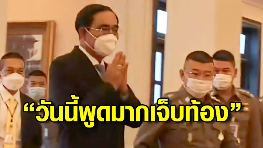 ซึ่งการมาถึง สตช.ก่อนเวลา ทำให้เจ้าหน้าที่ตำรวจไม่ได้มีการตั้งแถวรับเหมือนทุกครั้ง ขณะที่ พล.ต.อ.ดำรงศักดิ์ กิตติประภัสร์ ผู้บัญชาการตำรวจแห่งชาติ (ผบ.ตร.) ถึงกับต้องวิ่งเพื่อมารับให้ทัน โดยพล.อ.ประยุทธ์ ยกมือแตะแขน ผบ.ตร. พร้อมกล่าวว่า ไม่เป็นไร ก่อนทักทายสื่อมวลชน พร้อมกล่าวว่า วันนี้พูดมากเจ็บท้อง ก่อนจะเดินขึ้นไปยังห้องรับรองชั้น 2 ทันที