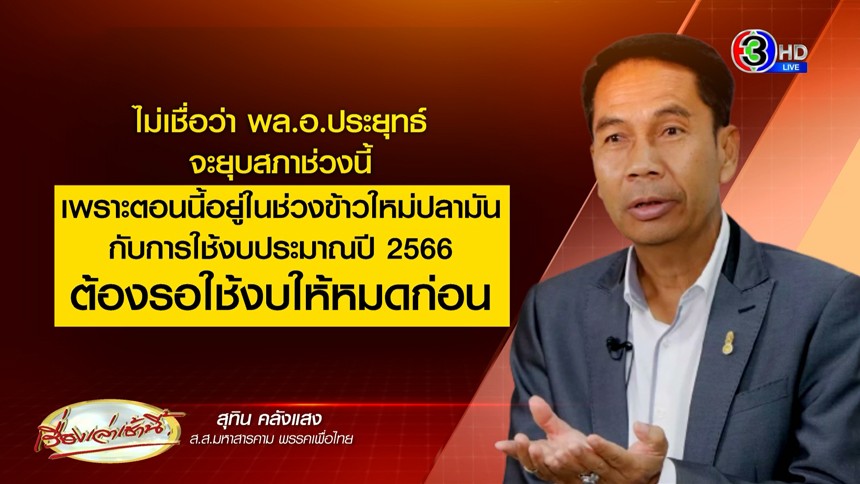 'สุทิน' ไม่เชื่อ 'บิ๊กตู่' จะยุบสภา 10 มี.ค.66 ชี้ต้องใช้งบประมาณปี 66 ให้หมดก่อน