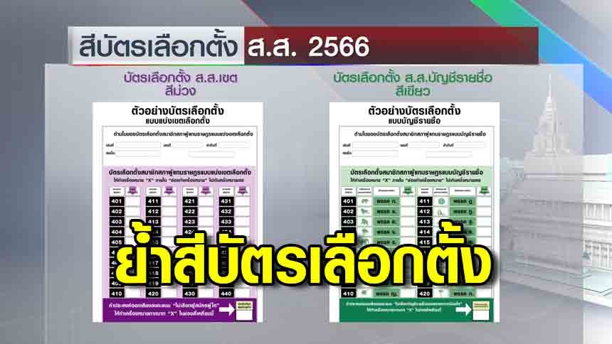 กกต. ย้ำบัตรเลือกตั้ง "สีม่วงเลือก ส.ส.เขต" - " สีเขียว เลือก ส.ส.บัญชีรายชื่อ"