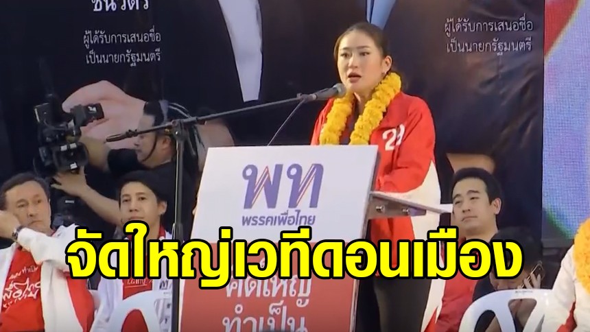'เพื่อไทย' จัดใหญ่เวทีดอนเมือง 'อุ๊งอิ๊ง' ขึ้นปราศรัย ครั้งสุดท้ายก่อนลาคลอด