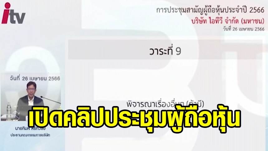 เมื่อวันที่ 11 มิ.ย.66 ทีมข่าว 3 มิติ ได้รับข้อมูลจากหนึ่งในผู้ถือหุ้นไอทีวี ที่เข้าร่วมประชุมสามัญประจำปี เมื่อวันที่ 26 เม.ย.66 ให้ตรวจสอบว่า บันทึกการประชุมที่มีการเผยแพร่เป็นเอกสาร ไม่ตรงกับการประชุมที่มีการถ่ายทอดผ่านอิเล็กทรอนิกส์