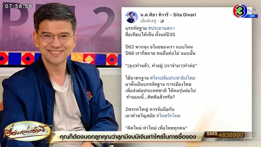 นาวาอากาศตรี ศิธา ทิวารี เลขาธิการพรรคไทยสร้างไทย โพสต์ข้อความผ่านเฟซบุ๊ก ระบุ