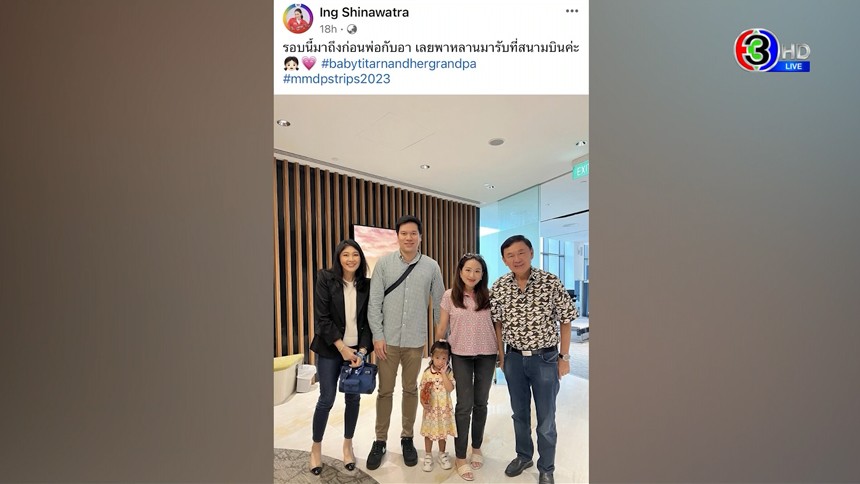 ด้าน น.ส.แพทองธาร ชินวัตร หัวหน้าครอบครัวเพื่อไทย โพสต์อินสตาแกรมและเฟซบุ๊กส่วนตัว ภาพครอบครัวที่ถ่ายภาพร่วมกับนายทักษิณ ชินวัตร และ น.ส.ยิ่งลักษณ์ ชินวัตร ที่ประเทศสิงคโปร์ พร้อมแคปชันสั้นๆ ว่า รอบนี้มาถึงก่อนพ่อกับอา เลยพาหลานมารับที่สนามบินค่ะ