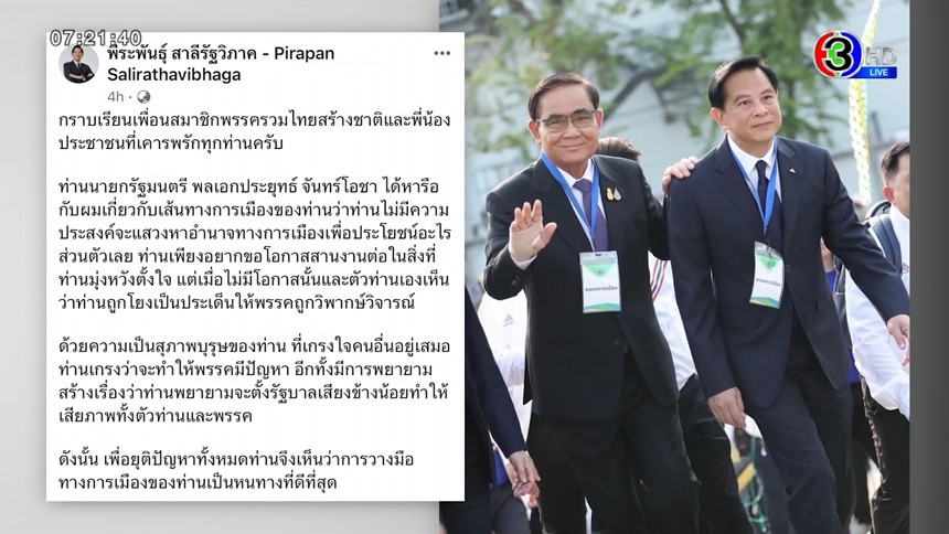 เพจ พีระพันธุ์ สาลีรัฐวิภาค - Pirapan Salirathavibhaga ได้โพสต์ข้อความระบุว่า