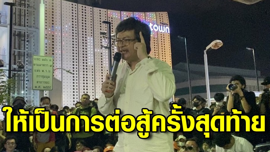 ขอให้ประชาชนอย่าเพิ่งลางาน เพราะอาจจะต้องลายาว ใครที่ไม่ได้ทำงานประจำไปรวมกันได้ในช่วงบ่าย แต่ถ้าพนักงานประจำ พนักงานบริษัท ข้าราชการ เลิกงานแล้วเจอกันที่สภา เราไม่ได้ไปไล่ ไปกดดันหรือไปขอร้อง เราเพียงจะไปตบมือไปยก 3 นิ้วแต่ถ้าพรุ่งนี้ถูกหักหลังถูกปิดประตู การต่อสู้ของเราในสัปดาห์หน้าเกิดขึ้นแน่นอน