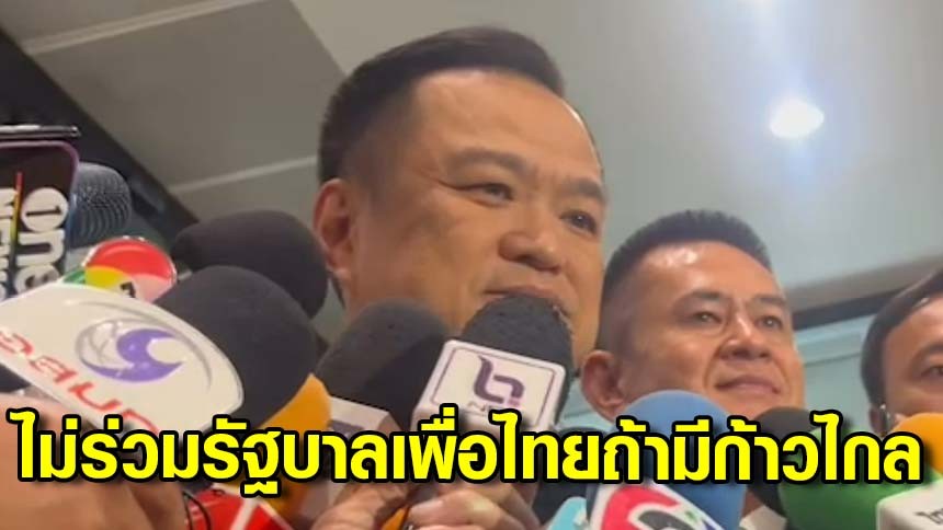 “อนุทิน” ย้ำไม่ร่วมรัฐบาลเพื่อไทย หากยังมีก้าวไกล-ไม่หนุนรัฐบาลเสียงข้างน้อยปัดพร้อมชิงนายกฯ รอพรรคอันดับ 1-2 จัดเสร็จก่อน