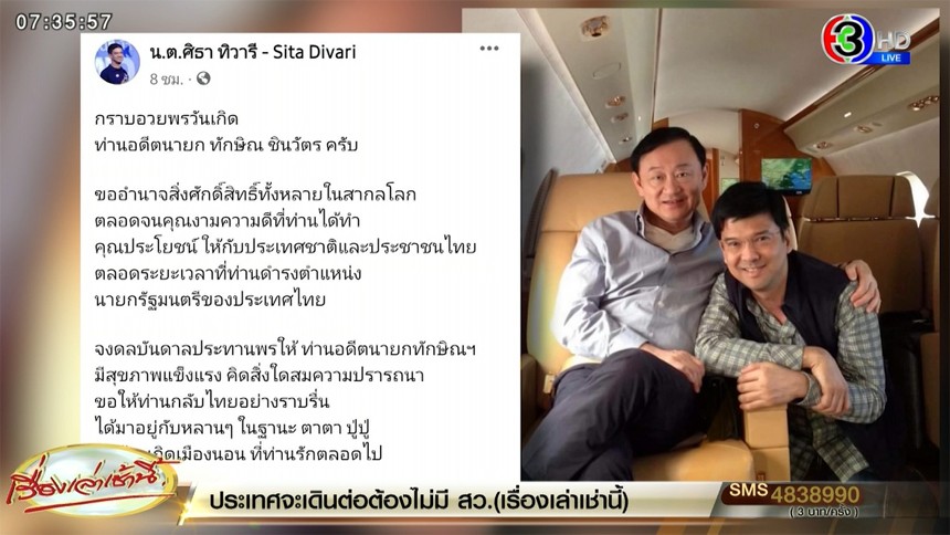 ‘ศิธา’ อวยพรวันเกิด ‘ทักษิณ’ ยินดีได้กลับบ้าน แต่ไม่เห็นด้วยกับแนวทาง ‘เพื่อไทย’ ที่ทำอยู่ ด้านจาตุรนต์ ตอกกลับจตุพร ยัน ทักษิณ กลับไทยไม่มีนัยยะทางการเมือง ไม่มีดีล “บิ๊กป้อม” นั่งนายกฯ