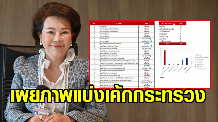 พร้อมคอมเม้นใต้โพสต์ เป็นภาพข้อมูลการแบ่งเก้าอี้รัฐมนตรีของแต่ละพรรคในรัฐบาลเพื่อไทย