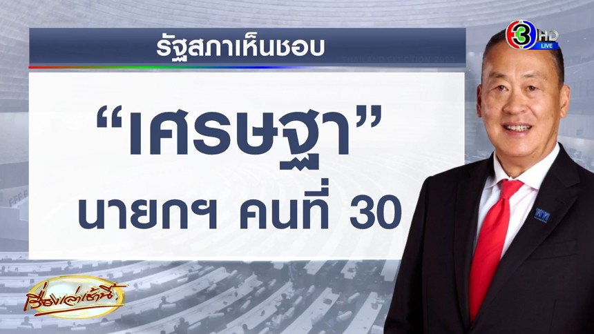 เมื่อวานนี้ (22 ส.ค.) ภายหลังจากที่ประชุมร่วมกันของรัฐสภา ที่มีนายพรเพชร วิชิตชลชัย ประธานรัฐสภา เป็นประธานการประชุม พิจารณาให้ความเห็นชอบบุคคล ซึ่งสมควรได้รับแต่งตั้งเป็นนายกรัฐมนตรี ตามมาตรา 272 รัฐธรรมนูญ โดย นพ.ชลน่าน ศรีแก้ว ส.ส.น่านและหัวหน้าพรรคเพื่อไทย (พท.) เป็นผู้เสนอชื่อ นายเศรษฐา ทวีสิน แคนดิเดตนายกรัฐมนตรี พรรค พท. เป็นนายกรัฐมนตรี