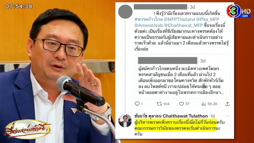 'ชัยธวัช' เร่งสอบวินัย อดีตผู้สมัคร สส.ก้าวไกล ละเมิดทางเพศโฆษกพรรคอื่น ขอโทษแล้วปิดบัญชี