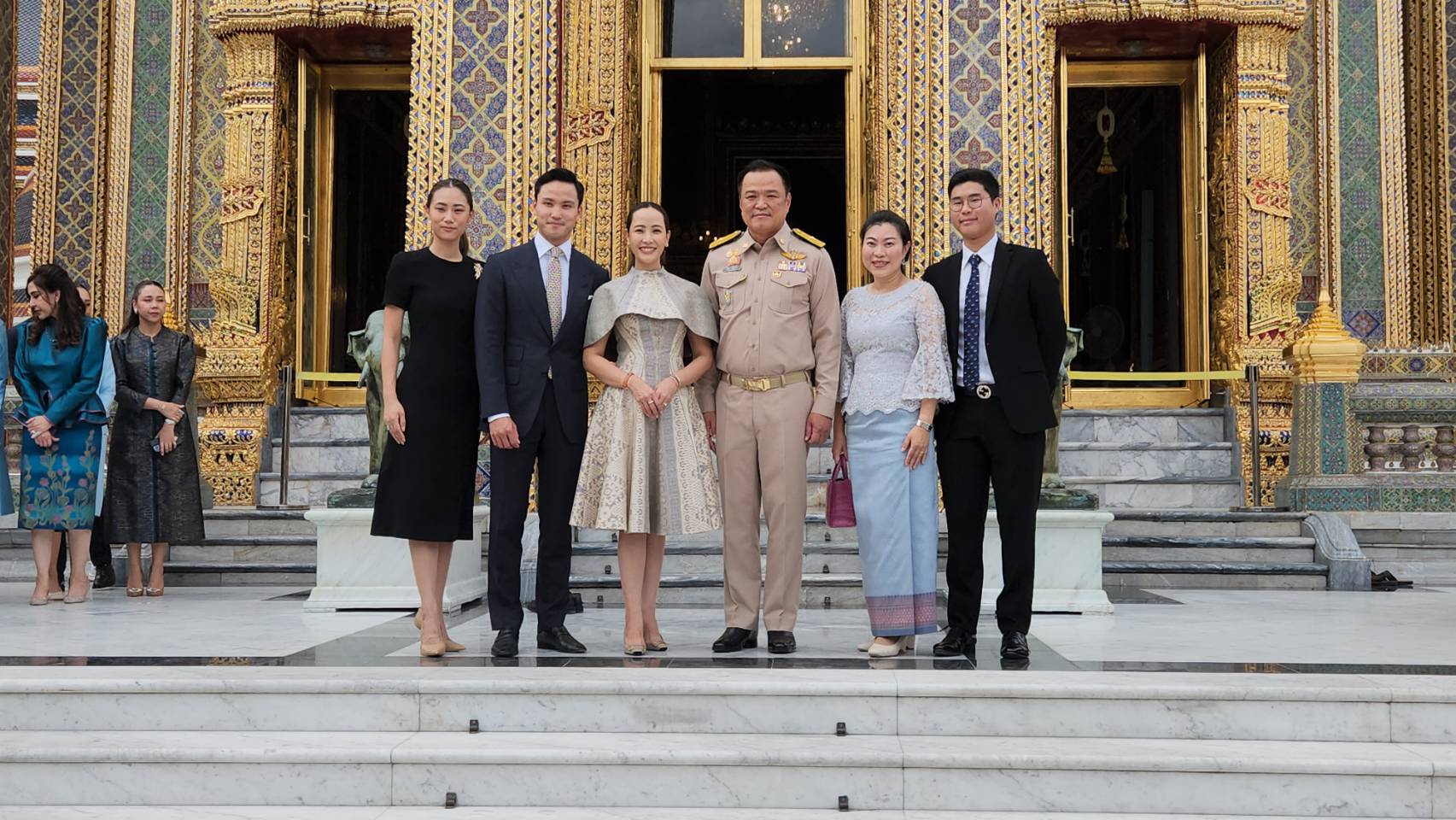 ทั้งนี้ ในช่วงหนึ่งระหว่างที่ นายอนุทิน ถ่ายรูปครอบครัวหน้าพระอุโบสถ ปรากฏว่ามีรองเท้าอยู่ในเฟรมด้วย ช่างภาพจึงบอกว่า มีรองเท้าติดอยู่ในเฟรม ทำให้ นายอนุทิน เดินไปก้มลงหยิบรองเท้า ซึ่งไม่ทราบว่าเป็นของใคร นำไปวางไว้นอกเฟรม