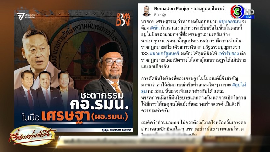 'รอมฎอน' แนะ 'เศรษฐา' เรื่องยุบ 'กอ.รมน.' ควรถกกันในสภา ไม่ใช่ปัดทิ้ง